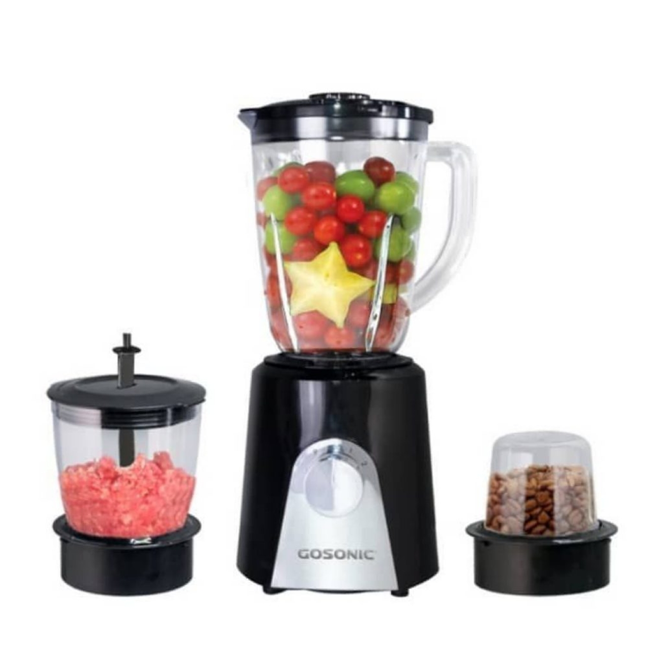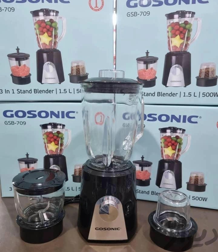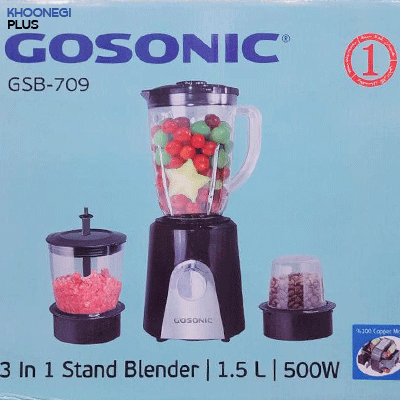 مخلوط کن گوسونیک مدل GSB-709 یک دستگاه سه کاره (مخلوط کن، آسیاب، خردکن) با توان 500 وات است. ظرفیت پارچ مخلوط کن آن 1.5 لیتر است. بدنه دستگاه از جنس پلاستیک و تیغهها از جنس استیل ضدزنگ هستند. دستگاه دارای 3 تنظیمات سرعت و عملکرد پالس نیز میباشد