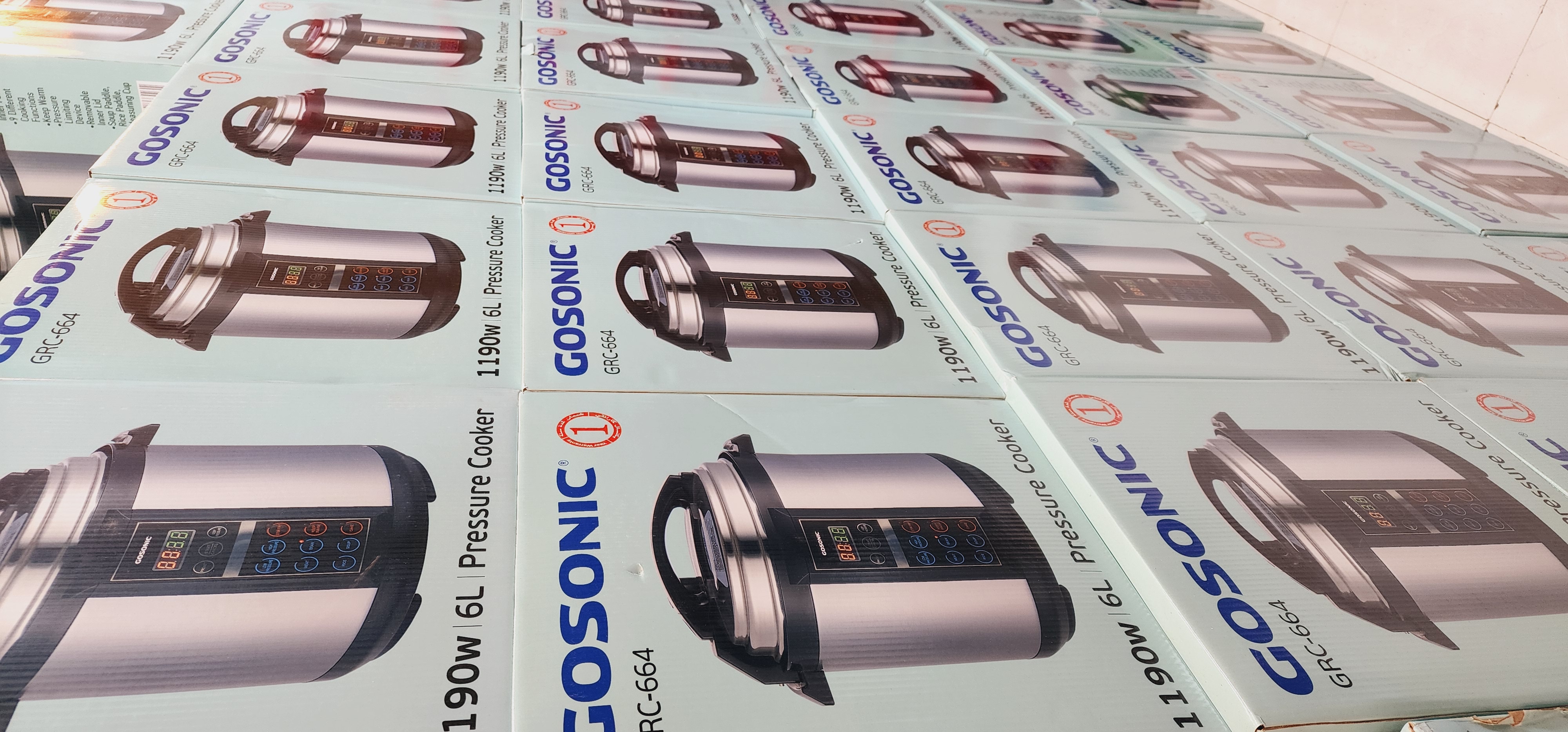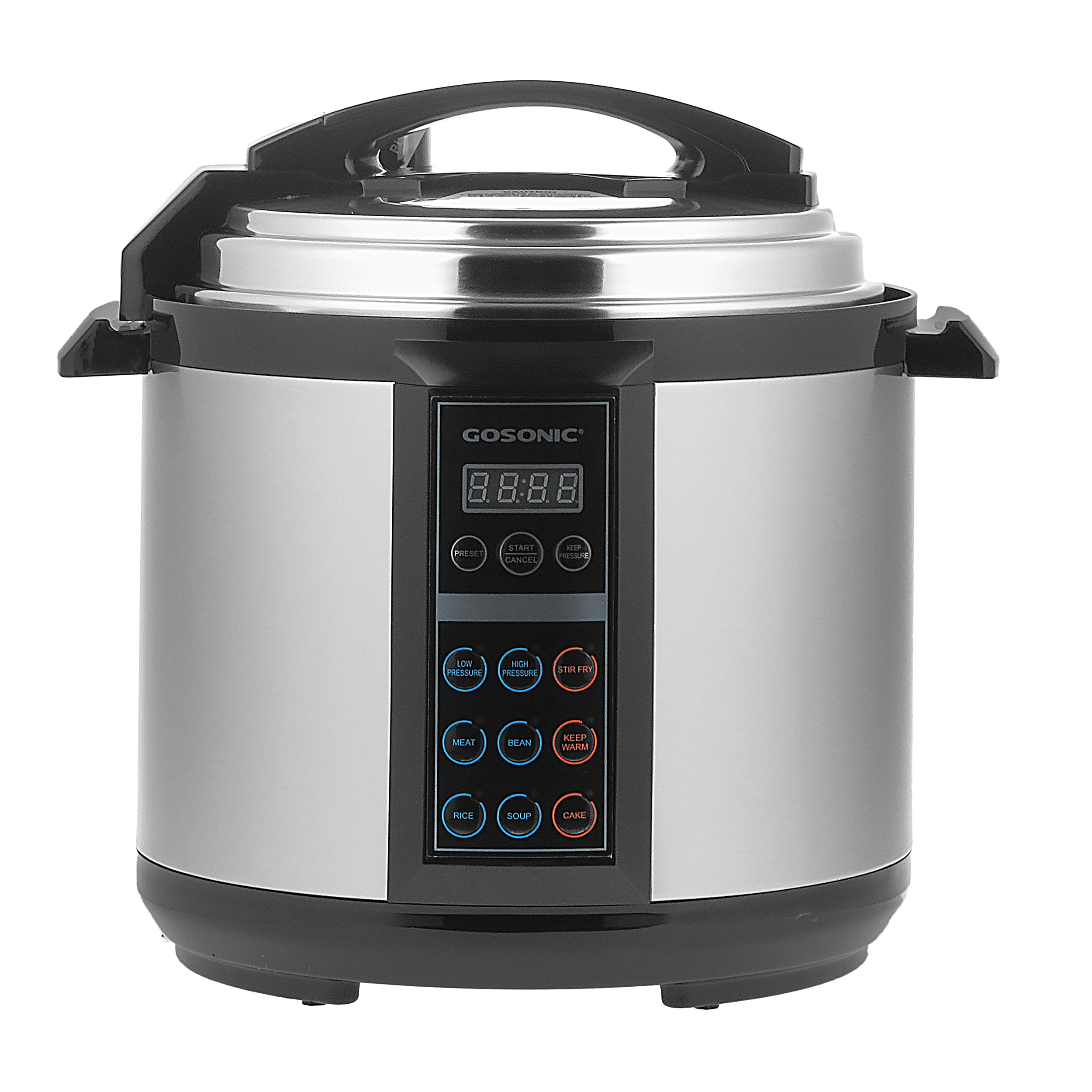 زودپز برقی گوسونیک مدل GRC-664 یک دستگاه با ظرفیت 6 لیتر و توان 1190 وات است. این زودپز دارای 10 برنامه پخت متنوع، سیستم گرم نگهدارنده، سیستم خاموشی خودکار و تایمر 24 ساعته می باشد. جنس بدنه آن از استیل و جنس دیگ داخلی از گرانیت نچسب است.